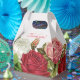Vintage roses party favor box for a woman's birthday, anniversary, or wedding event. Beautiful big red, pink and white roses cover the sides of this favor box with a handle. Include "thank you" text on the front in red, or change it. Other box types will work, but the text will need to be deleted. The background color is very pale gray.