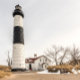The black and white Big Sable Point Lighthouse tower in Ludington, Michigan, is 112 feet tall