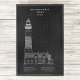 The black blueprint aesthetic suggests durability and permanence—like a night-mode schematic of a structure built to withstand time, weather, and shifting sands. Historically fitted with a third-order Fresnel lens and now operating with modern optics, the lighthouse continues to cast its steady white light across 15 nautical miles of open water.