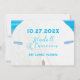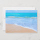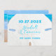 Save the date cards with big sand dollar design. A simple wedding announcement with three lines of tropical blue text over a realistic, white sand dollar image. The background ocean image shows through the keyhole sand dollar’s holes and around the edges at the top. The text matches the turquoise and blue water colors. Customize three lines with date, names and location. The full beach scene is printed on the back. Simple, beautiful, and effective way to ask guests to save your wedding date.