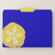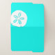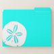 Big sand dollar file folders in tropical beach colors. Aqua, navy and turquoise folders each have one artistic sand dollar on the front.