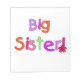 Big Sister keepsake boxes, tiles, ornaments, notebooks, pillows, mugs, stickers, magnets, and more with bright green, pink, orange, and purple text design!