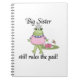 Big Sister keepsake boxes, tiles, ornaments, notebooks, throw pillows, gel mousepads, postage, stickers, and other big sister apparel and gift items featuring a girl frog and lily pad and text that reads "Big Sister still rules the pad!". Great sibling gifts for the older sis when the new baby brother or baby sister arrives!