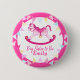 Keep your new big girl happy and looking forward to her new baby sister with this cute hand-painted pink rocking horse with stars and graphic bunting button badge reads Big Sister to Be then add your name this example has Emily. Other matching items available and boy versions for brothers available. Original whimsical baby pink hobby / rocking horse watercolor painting and graphic design by Sarah Trett for www.mylittleeden.com on zazzle.