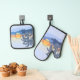 Big Sunset Hawaiian Stripe Surfers - Blue & Orange Oven Mitt & Pot Holder Set