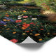 This art print features a watercolor portrait of a hiking trail surrounded by colorful wildflowers in Big Sur, California.