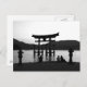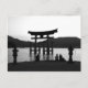 Black and white photography of big torii gate at Itsukushima Shrine on Miyajima Island in Japan.