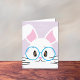 Cute simple Easter greeting card with the close up of a white bunny's face wearing blue eyeglasses . The inside is blank , leaving you plenty of space to write whatever you want :) .