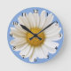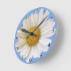 A close-up photo of a white daisy flower on light blue background with black numbers.