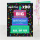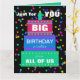 This big work birthday card from group features a three layer cake on the large birthday card. The card reads "Just for You Big Birthday wishes from all of us". Inside, the words Happy Birthday appear in large print. This makes a great birthday card from a group of people. Copyright Kathy Henis