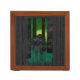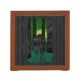 Keep your desk neat and tidy with a customized desk organizer. Showcase your favorite artwork, photos, or text on the front and back of this mahogany wood finished desk piece. Great for keeping clutter contained!