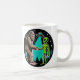 This whimsical image illustrates a friendly encounter between two legendary beings: Bigfoot and an alien. The scene, set against a starry night sky with silhouettes of pine trees, shows Bigfoot and the alien shaking hands under the beam of a UFO hovering above. Bigfoot, covered in brown fur, stands on the left while the green, humanoid alien with a large head and black eyes stands on the right. The combination of these iconic figures in a peaceful meeting adds a playful twist to both myths, making it a fascinating and humorous piece for enthusiasts of the unexplained.