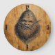 Bring the mystery of the forest into your home with this rugged Bigfoot wall clock. Designed with a rustic, cabin-inspired aesthetic, this timepiece features a bold Sasquatch silhouette set against earthy textures and woodland tones. Perfect for cabins, lodges, man caves, or anyone who believes in the legend.