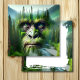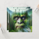 Sasquatch themed blank card. A cool double illustration of bigfoot with a forest, mountains and river double exposure. Pretty green and blue hues.