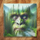 Sasquatch themed wall art. A cool double illustration of bigfoot with a forest, mountains and river double exposure. Pretty green and blue hues.