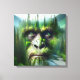 Sasquatch themed canvas wall art. A cool double illustration of bigfoot with a forest, mountains and river double exposure. Pretty green and blue hues.
