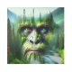 Sasquatch themed wall art. A cool double illustration of bigfoot with a forest, mountains and river double exposure. Pretty green and blue hues.