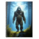 Sasquatch or Bigfoot in the woods surrounded by tall pine trees notebook.