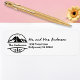This address label features a silhouette of Bigfoot walking through mountains and a sky full of stars, capturing the spirit of wilderness and mystery. Below the image sits pine trees. This design invokes an inspiring a sense of wonder in the unknown making it ideal for adding a unique, artistic touch to stationery or personal projects. Whether you’re a Bigfoot enthusiast or simply drawn to nature-inspired designs, this label is a perfect way to express your adventurous spirit and remind yourself to always believe in the extraordinary. Customize it with your family name in the middle of the circle image and your full name and address to the right of the image.