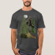 My 11 yo wore adult XL (5’7” 165#). The 8yo is small framed. She wore adult small and tied it in the back. Grandma wore adult large with long sleeve shirt underneath. Tall girl adult medium. Dark haired male adult large. Good quality dark Heather gray, Gildan brand shirt. -it was next up from basic choice and cost about $20 per shirt. Not too thick or thin. Washed and dried well, no major shrinkage. Not see-through. Can wear a bra under it fine. Screen print is just as shown and well done, front and back.