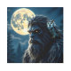 Bigfoot magnet. A Sasquatch with golden glowing eyes with an owl on his shoulder with a Full Moon forest background in shades of blue.