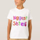 Pretty text in pink, purple, and green on Biggest Sister T-shirts, hoodies, mugs, magnets, cards, buttons, tote bags, and other big sister items that are perfect for the oldest sister! We have matching little sister, big sister, and bigger sister t-shirts and gifts too!