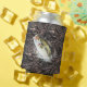A realistic jumping largemouth bass on the front and back on a camo background and a triple hook logo on the bottom.