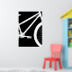 This contemporary style poster features an oversized white bicycle front silhouette on a black background creating a geometric, modern look. The background color can easily be changed by clicking "Edit Design". This print is shown in a white frame (not included).