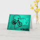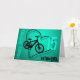 Bike (model 1) + heart with drop shadow on gradient emerald color background. Design on horizontal greeting card with texts to customize. You can easily change text and number by clicking the customize button.