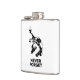 Well made flask, a little better than I had expected. Flask came in clear plastic box which gave it a nice presentation when I took it out of the zazzle packaging. Image is not printed on flask but on sticker. Don't know how this will hold up I haven't used it yet. This would make a Great gift! I plan to purchase more for friends! Cheers. I thought a little brighter than computer. Very crisp, writing wasn't