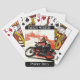 Customizable Bike Week playing cards with red and white vintage graphic of a motorcycle race. Customized and personalized playing cards for a charity fundraising poker run for motorcycle riders during bike week. Awesome gift for the biker who loves to play poker, blackjack and/or hit the casinos.