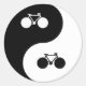 The zen yin-yang balance sign with a black bicycle in the white half, and a white bike in the black. Biking is good for the body and mind