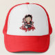 The front panel of this trucker hat features a bold and vivid illustration of Betty Boop, reimagined as a fearless biker chick.