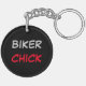 BIKER CHICK Sitting on Her Motorcycle Keychain