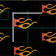 Motorcycle theme with orange biker flames pattern on a black background.