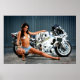 This hot biker gal posing with a highly modified Suzuki GSX-R