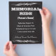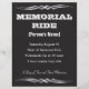 Memorial Ride or Memorial Run invitation for motorcycle memorial or celebration of life. Chrome ornament on black grunge background with fully customizable text, just replace text with your own information for bikers to gather for a memorial tribute ride to a lost friend.