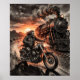 Biker Races Steam Train Desert Sunset Charcoal Art Poster