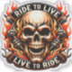 Biker Skull Ride to Live Live to Ride Fiery Graph Sticker