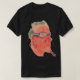 My 11 yo wore adult XL (5’7” 165#). The 8yo is small framed. She wore adult small and tied it in the back. Grandma wore adult large with long sleeve shirt underneath. Tall girl adult medium. Dark haired male adult large. Good quality dark Heather gray, Gildan brand shirt. -it was next up from basic choice and cost about $20 per shirt. Not too thick or thin. Washed and dried well, no major shrinkage. Not see-through. Can wear a bra under it fine. Screen print is just as shown and well done, front and back.
