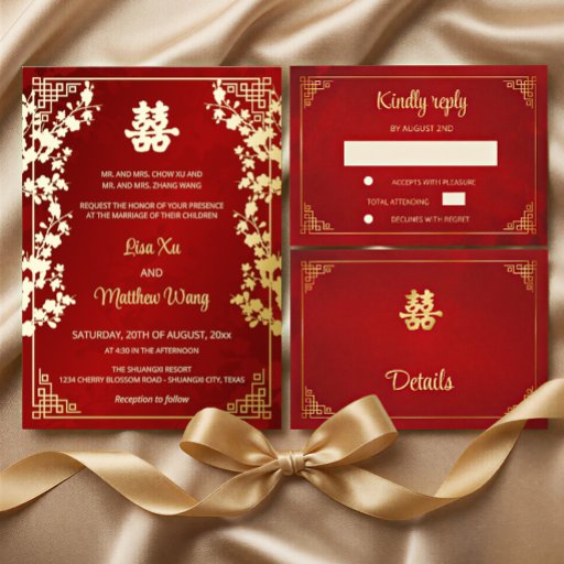 Yes, you can print on the back of your invitation for free! Most designs already have a corresponding design on the back that can be personalized using the Design Tool and going to Layers. This is a great way to communicate more information or further personalize your Bilingual Gold Frame Red Chinese Wedding Invitation. The option is really up to you.