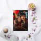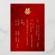 This elegant Chinese wedding invitation features a photo and, a real gold foil round gold double happiness symbol on a floral ruby red shimmering background. Bride and groom names in an elegant handwritten script. With a traditional Chinese text at the backside.Chinese wedding invitation or tea ceremony invitation.