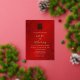 This elegant Chinese wedding invitation features an artistic real gold foil double happiness symbol on a floral ruby red shimmering background. Bride and groom names in an elegant modern handwritten script. With a backside text in Chinese.