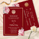 This modern Chinese wedding invitation features a real gold foil double happiness symbol and watercolor painted peony flowers on a red background. With a traditional Chinese text at the backside.