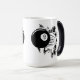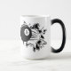 Billiard morphing mug is inspired out of my love for playing pool throughout my life. It features a black and white graphic design 8 ball breaking through a wall.