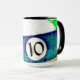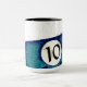 A grungy design of the cue ball behind a Billiards ball number 10.