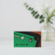 This business card features a pool table with a white cue ball, a black eight ball, and a pool stick.
