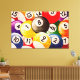 Triptych wrapped canvas art panels featuring a collage of billiard balls in a grunge style design.