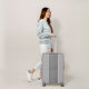 This sleek grey suitcase features binary code in black and red in a central stripe down the front. Great for computer scientists, engineers and developers on their travels, especially for business. You can customize the colors of the suitcase, handle, bumpers and wheels as well.
