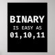 Binary Is As Easy As 01, 10, 11 Programmer Coding Poster